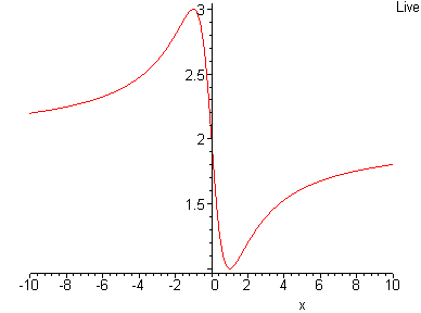 Hallo Marius! y = (2x^2-2x+2)/(x^2+1) y´ = 2(x^2-1)/(x^2+1)^2 y" = 4x(3-x^2)/(x^2+1)^3 y´ = 0 =>x1 = -1 =>x2 = 1 y"(x1) = -1 < 0 => Relatives Maximum y"(x2) = 1 > 0 => Relatives Minimum Gruß,Olaf II
